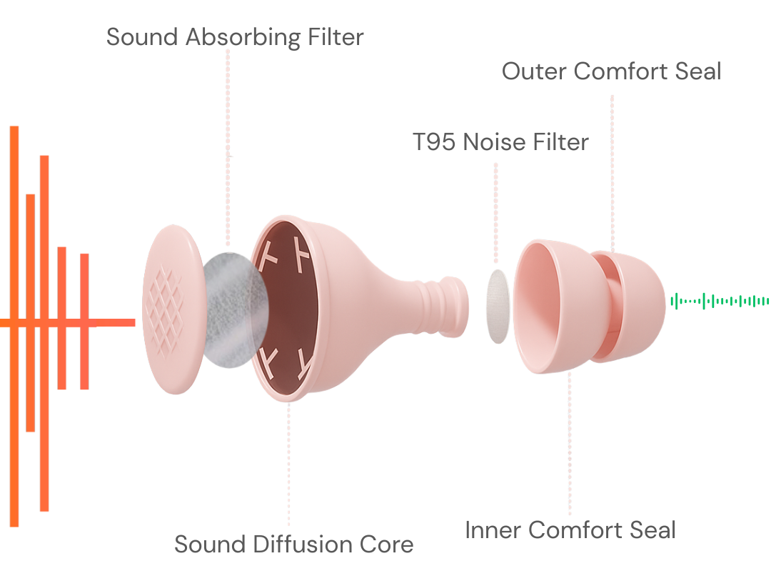 Unlike regular earplugs, Snoreplugs Pro uses our multi-layer sound filtering that: